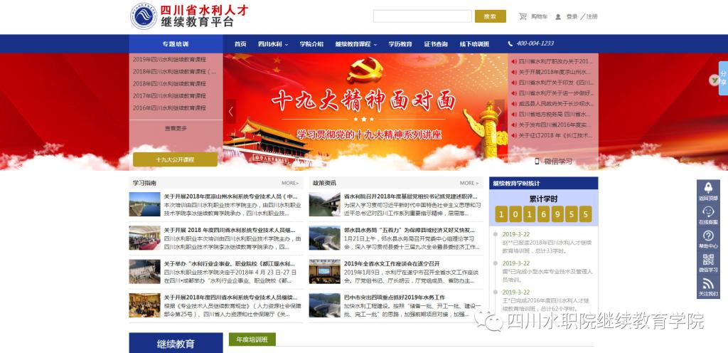 互联网+,正在赋予教育连接共享的力量。互联网技术的快速普及,教育变得越来越开放,为推动教育均衡发展和实现教育公平带来新契机。四川水利职业技术学院李冰继续教育学院在四川省水利厅《四川水利人才“十三五”规划》指导下,打造“四川省水利人才继续教育平台”,成为四川省水利职工全员培训、继续教育的重要途径。该平台自2017年推出以来不断更新完善,2018年注册学习人数达8627人,完成在线学习328334学时。四川水利职业技术学院高度重视平台的课程建设,鼓励在校教师围绕水利行业新知识、新理念、新技能录制高水平的视频教学资源,同时不断扩充兄弟院校的优质资源,确保平台课程的实用与更新。